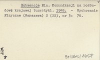 Subwencje Min. Komunikacji na rozbudowę krajowej turystyki. 1948