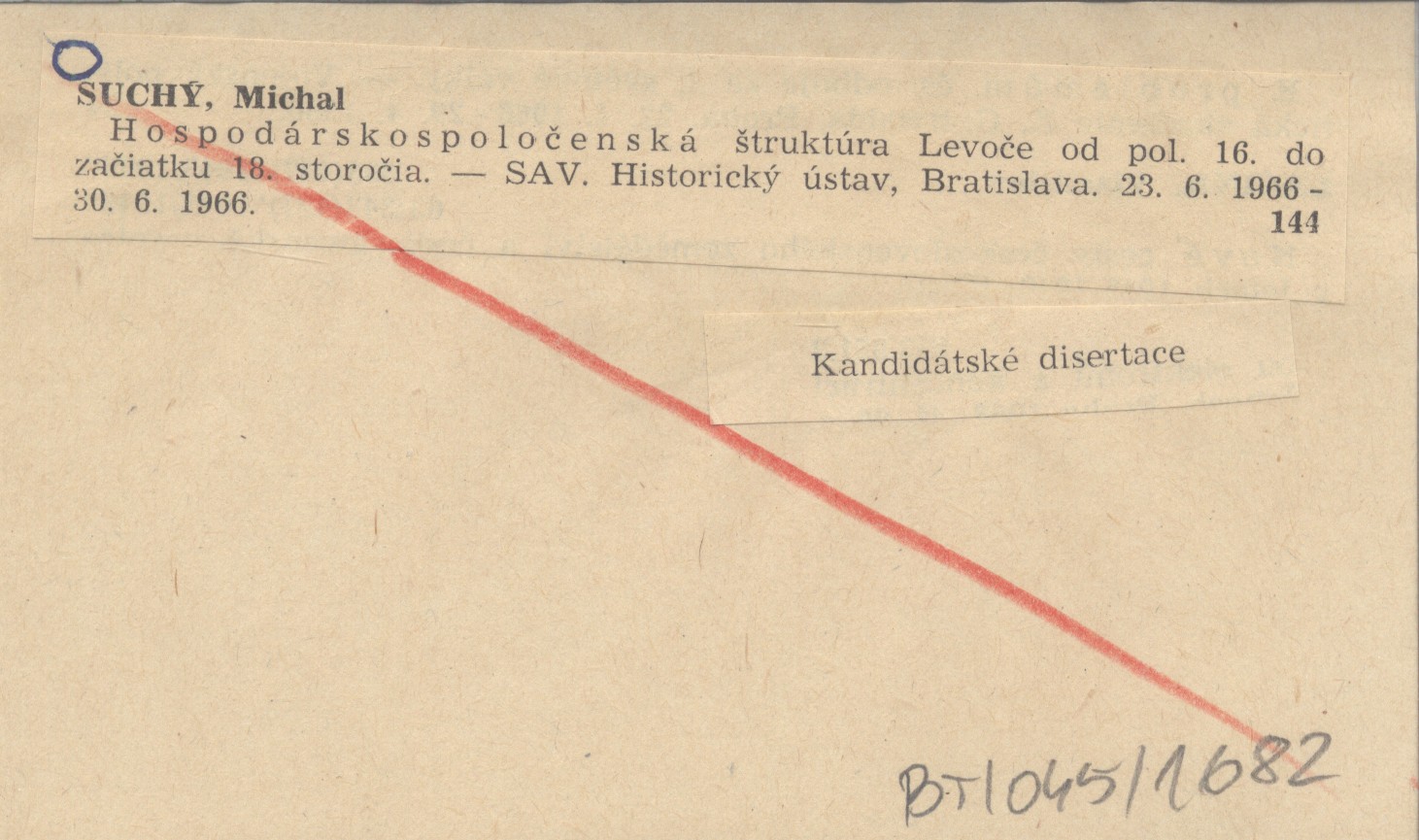 SUCHÝ Michal Hospodárskospoločenská ątruktúra Levoče od pol. 16. do začiatku 18. storočia.