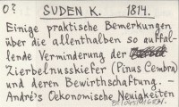 SUDEN K. 1814 Einige praktische Bemerkungen über die allenthalben so auffallende Verminderung der Zierbelnusskiefer (Pinus Cembra) und deren Bewirthschaftung.