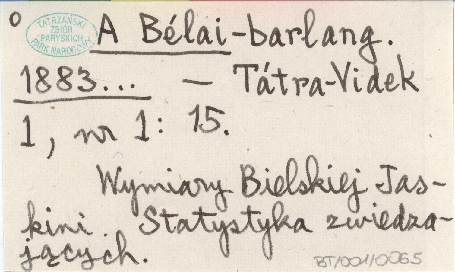 Tátra-Videk, 1, nr 1: 15. Wymiary Bielskiej Jaskini. Statystyka zwiedzających.