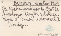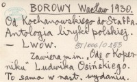 BOROWY Wacław 1954 Od Kochanowskiego do Staffa. Antologia liryki polskiej.