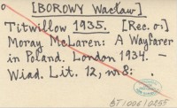 Titwillow [BOROWY Wacław] 1935 [Rec. o:] Moray McLaren: A Wayfarer in Poland. London 1934.