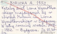 BORUCKA A. 1952 Katalog dzieł Leona Wyczółkowskiego znajdujących się w zbiorach Muzeum im. Leona Wyczółkowskiego w Bydgoszczy. W setną rocznicę urodzin. 1852-1952.