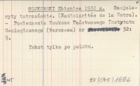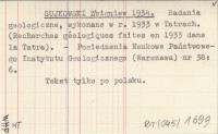 SUJKOWSKI Zbigniew 1934 Badania geologiczne, wykonane w r. 1933 w Tatrach. (Recherches géologiques faites en 1933 dans la Tatra).