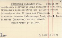 SUJKOWSKI Zbigniew 1937 Budowa mikroskopowa niektórych skał jurajskich z Pienin. (Structure microscopique des quelques roches jurassiques des Klippes des Piénines).