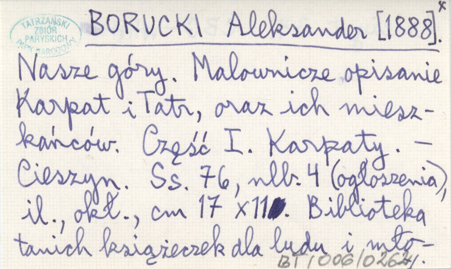 BORUCKI Aleksander [1888] Nasze góry. Malownicze opisanie Karpat i Tatr, oraz ich mieszkańców. Część I. Karpaty.