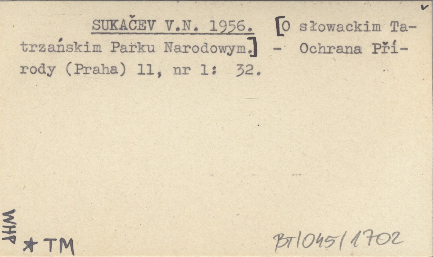 SUKAČEV V. N. 1956 [O słowackim Tatrzańskim Parku Narodowym.]