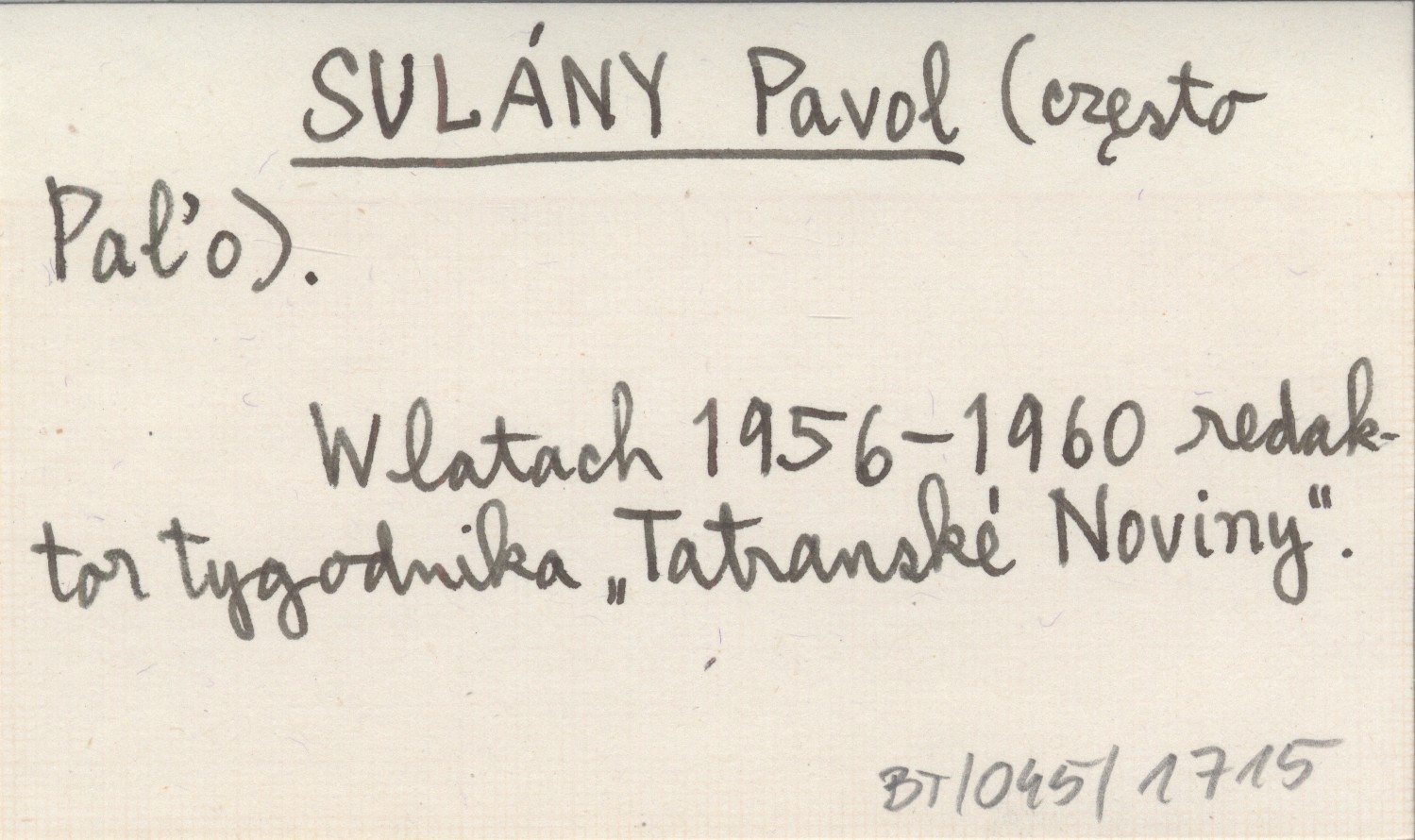 (często Paľo) W latach 1956-1960 redaktor tygodnika "Tatranské Noviny".