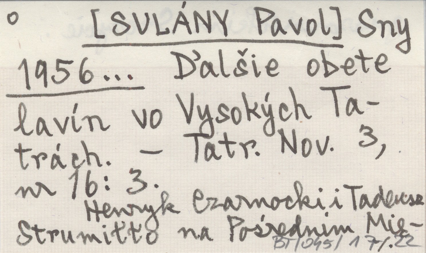 Sny [SULÁNY Pavol] 1956... Ďalšie obete lavín vo Vysokých Tatrách.
