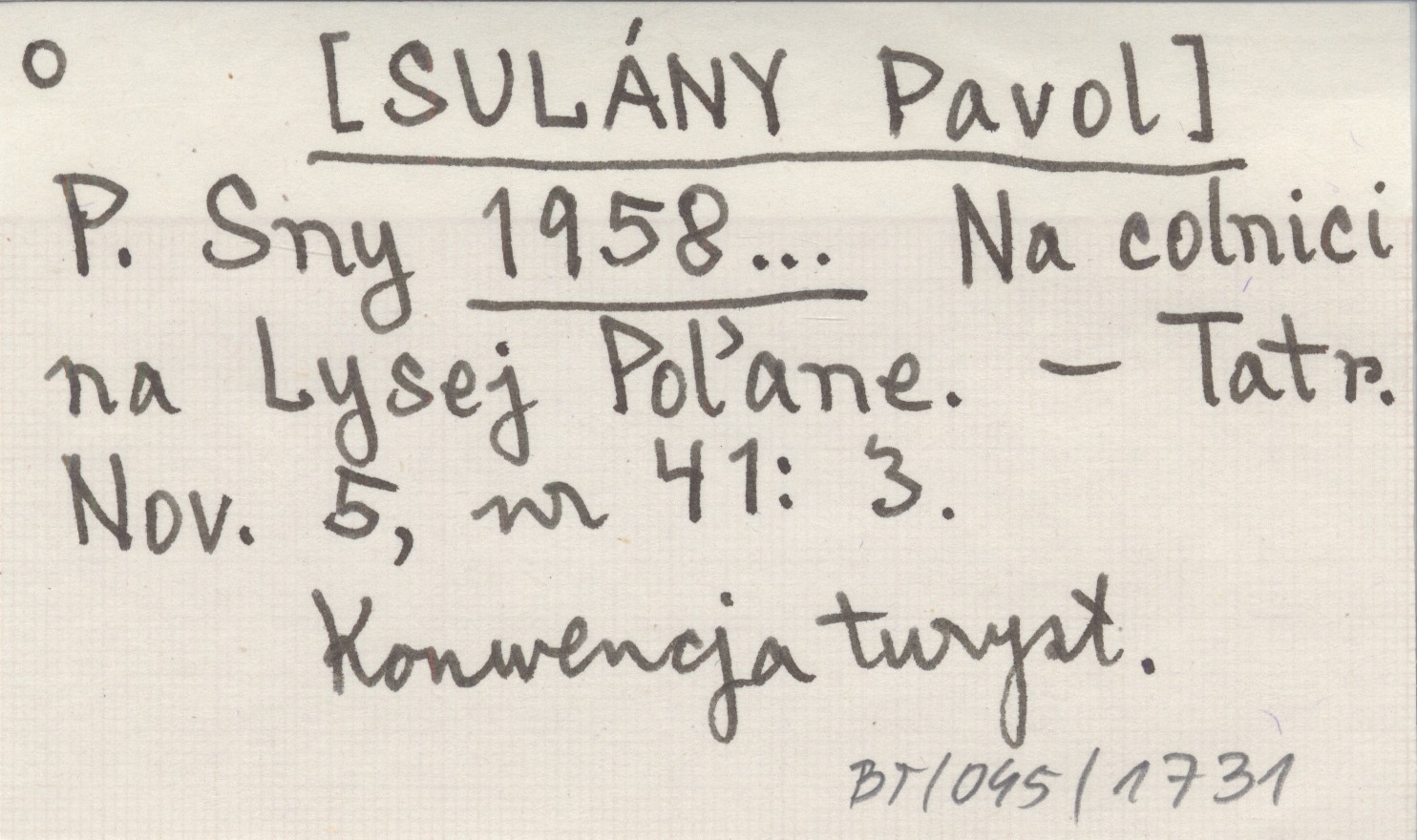 P. Sny [SULÁNY Pavol] 1958... Na colnici na Lysej Poľane.