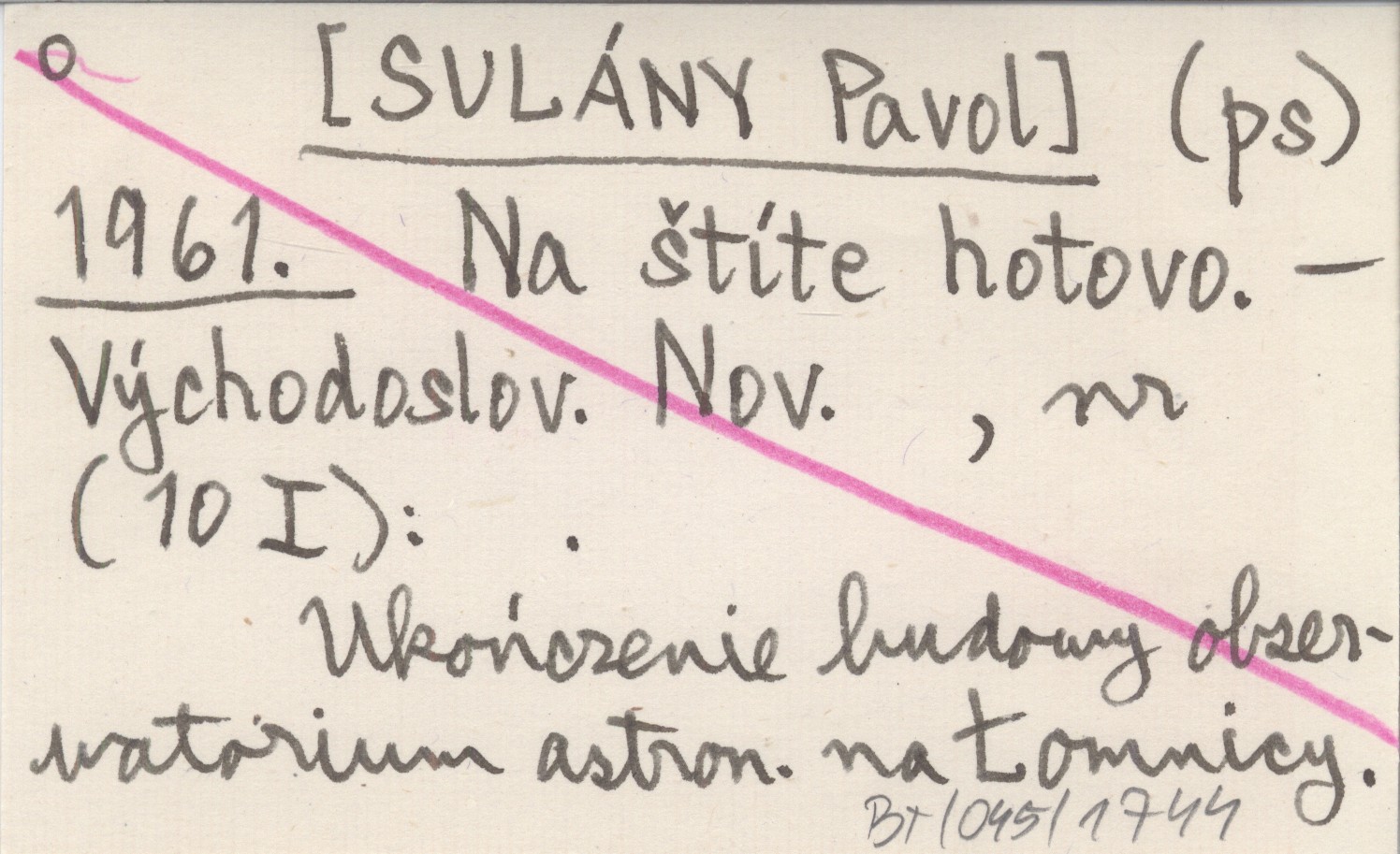 Východoslovenské Noviny, 10 I. Ukończenie budowy obserwatorium astronomicznego na Łomnicy.
