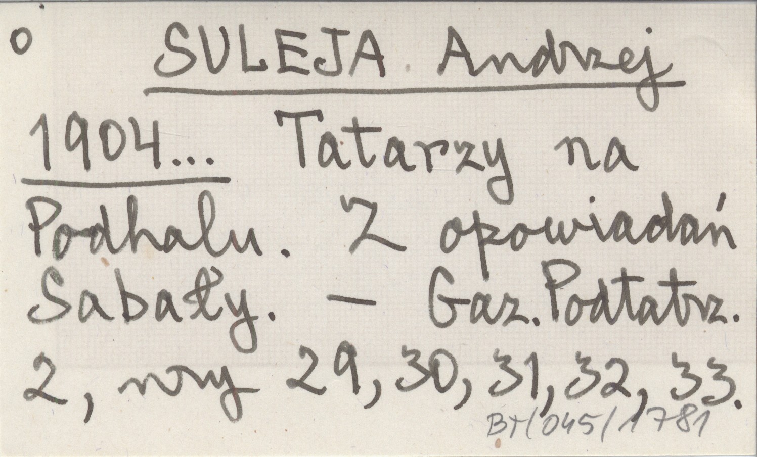 SULEJA Andrzej 1904... Tatarzy na Podhalu. Z opowiadań Sabały.