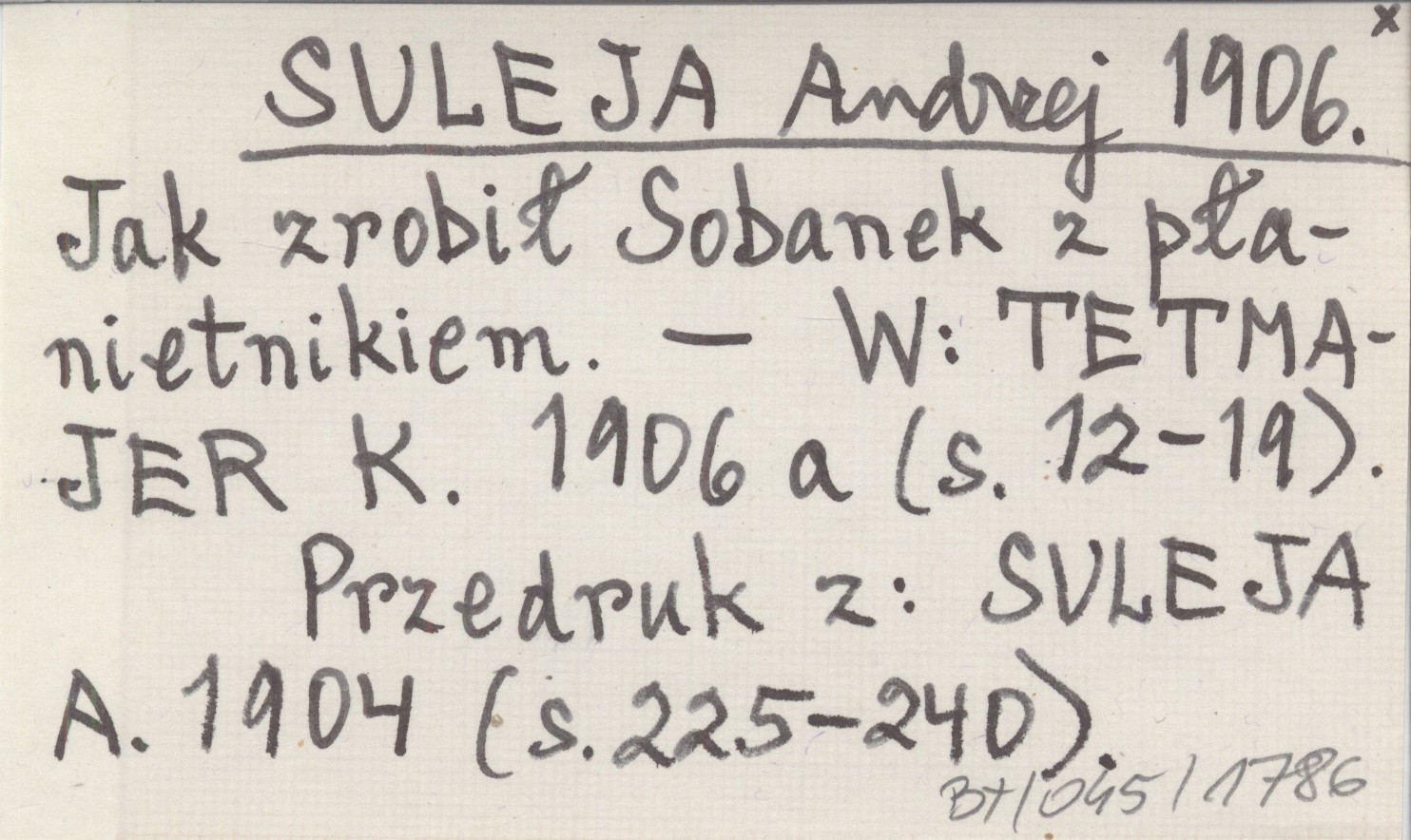 SULEJA Andrzej 1906 Jak zrobił Sobanek z płanietnikiem.