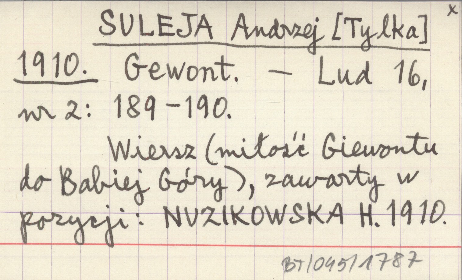 Lud, 16, nr 2: 189-190. Wiersz (miłość Giewontu do Babiej Góry), zawarty w pozycji: NUZIKOWSKA H. 1910.