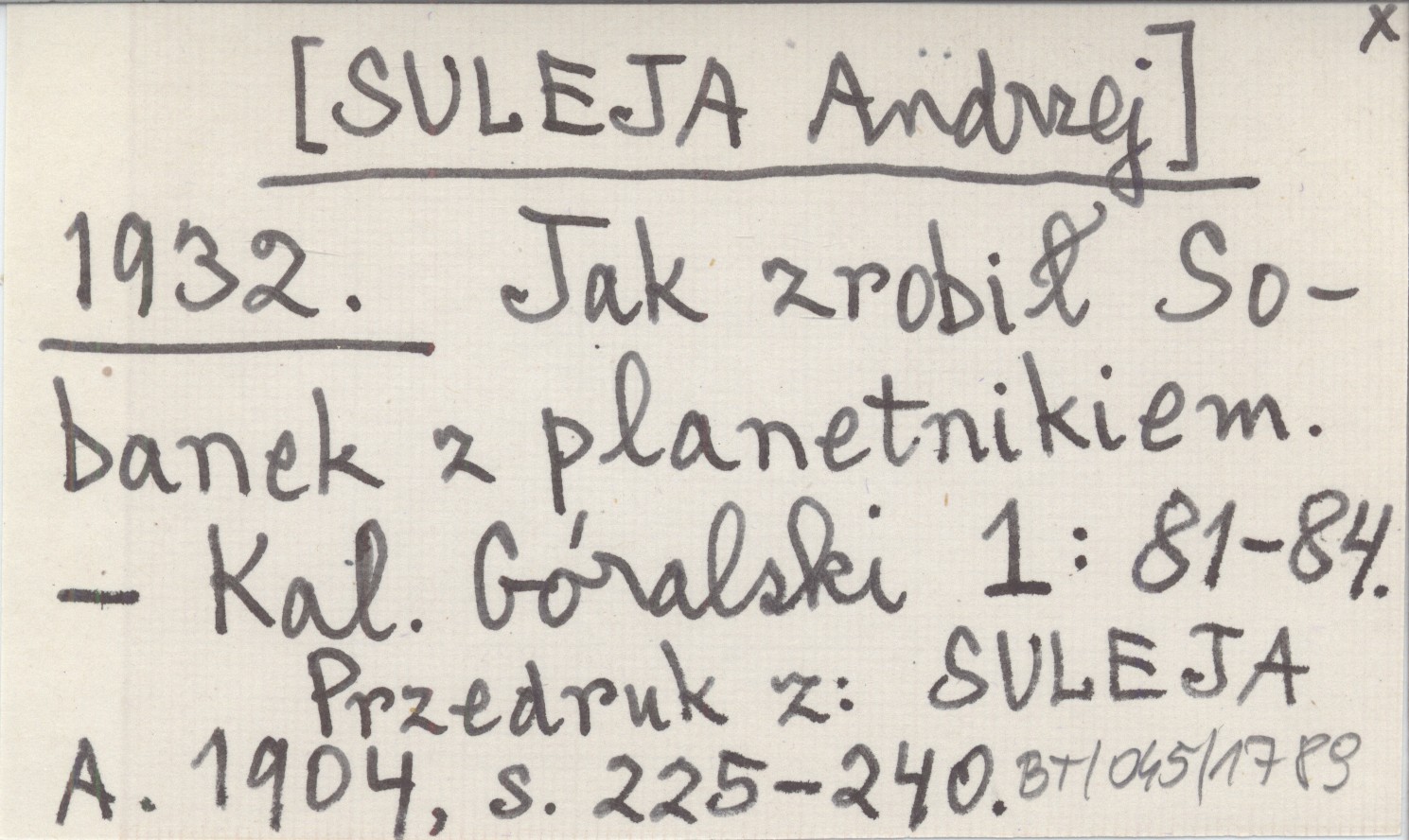 [SULEJA Andrzej] 1932 Jak zrobił Sobanek z planetnikiem.