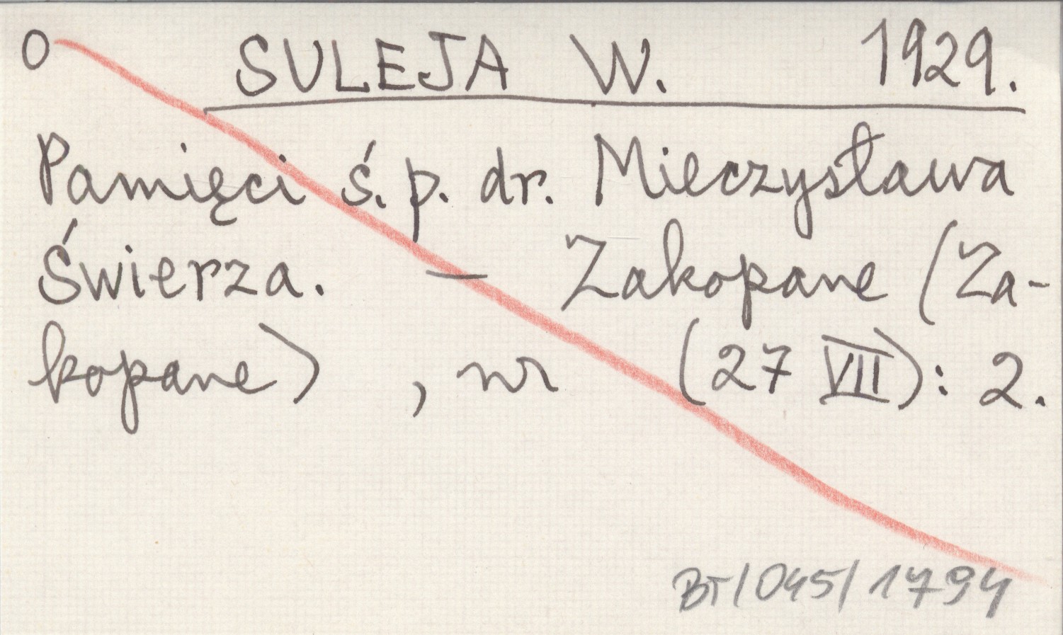 SULEJA W. 1929 Pamięci ś.p. dr. Mieczysława Świerza.