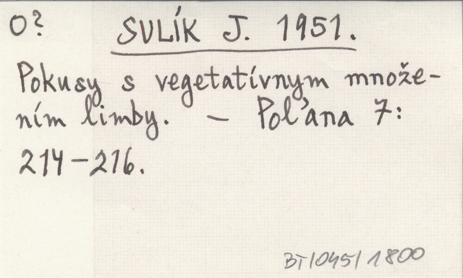 SULÍK J. 1951 Pokusy s vegetatívnym množením limby.
