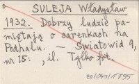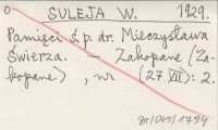 SULEJA Władysław 1929 Pamięci ś.p. Dr. Mieczysława Świerza.