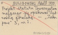 SULIGOWSKI Adolf 1910 Projekt statutu Towarzystwa mającego się opiekować ludnością góralską.