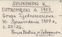 SULIKOWSKI K. OSTROMĘCKI, A. ; 1907 Grupa Zjednoczeniowa.