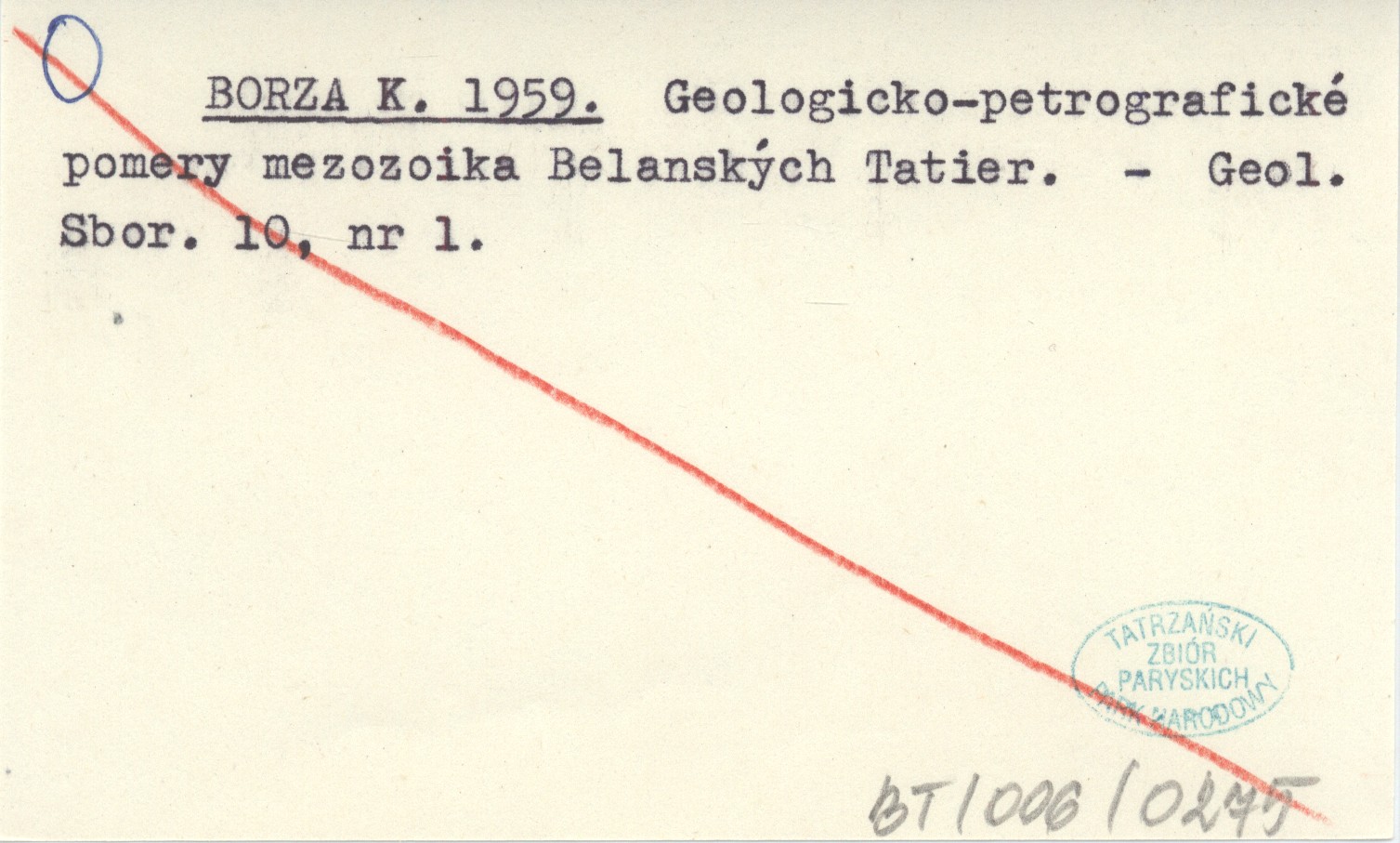 BORZA K. 1959 Geologicko-petrografické pomery mezozoika Belanskęch Tatier.