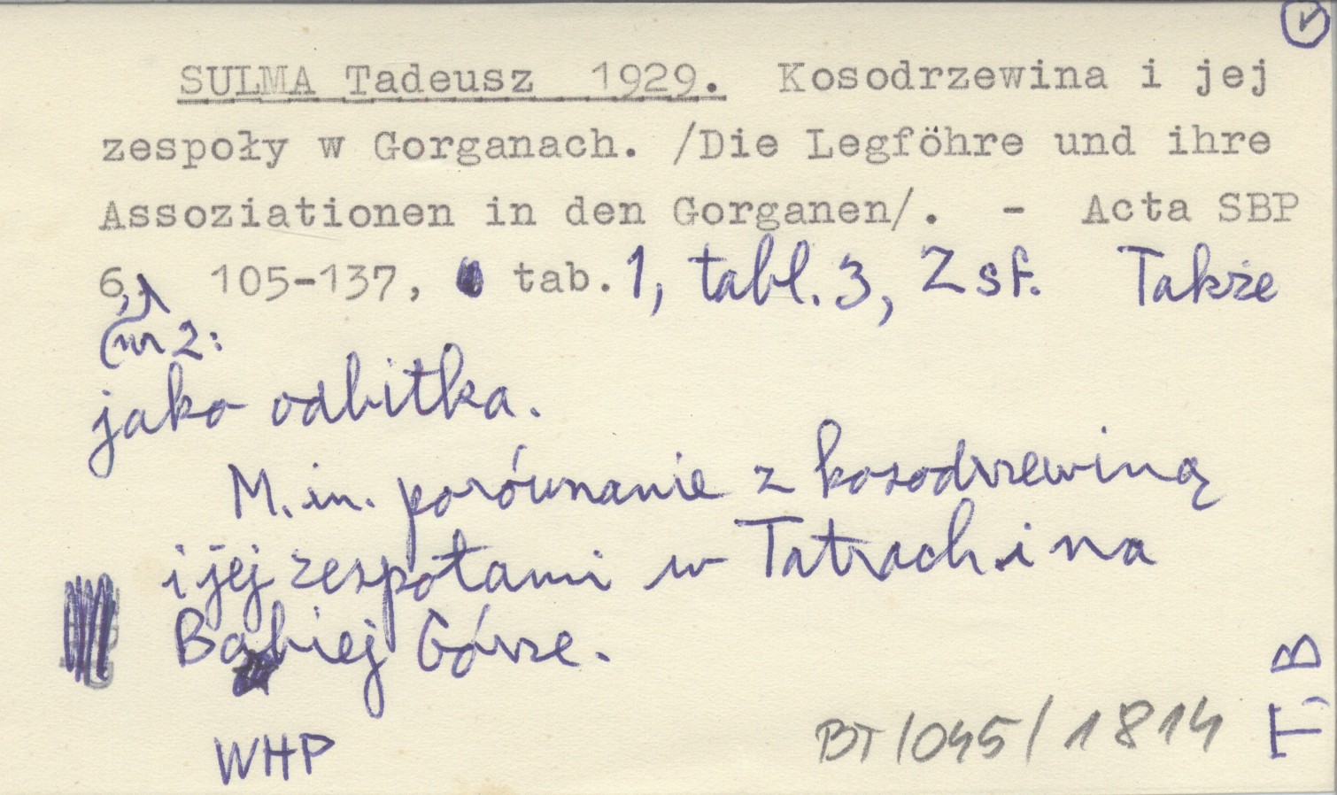 SULMA Tadeusz 1929 Kosodrzewina i jej zespoły w Gorganach. (Die Legföhre und ihre Assoziationen in den Gorganen).