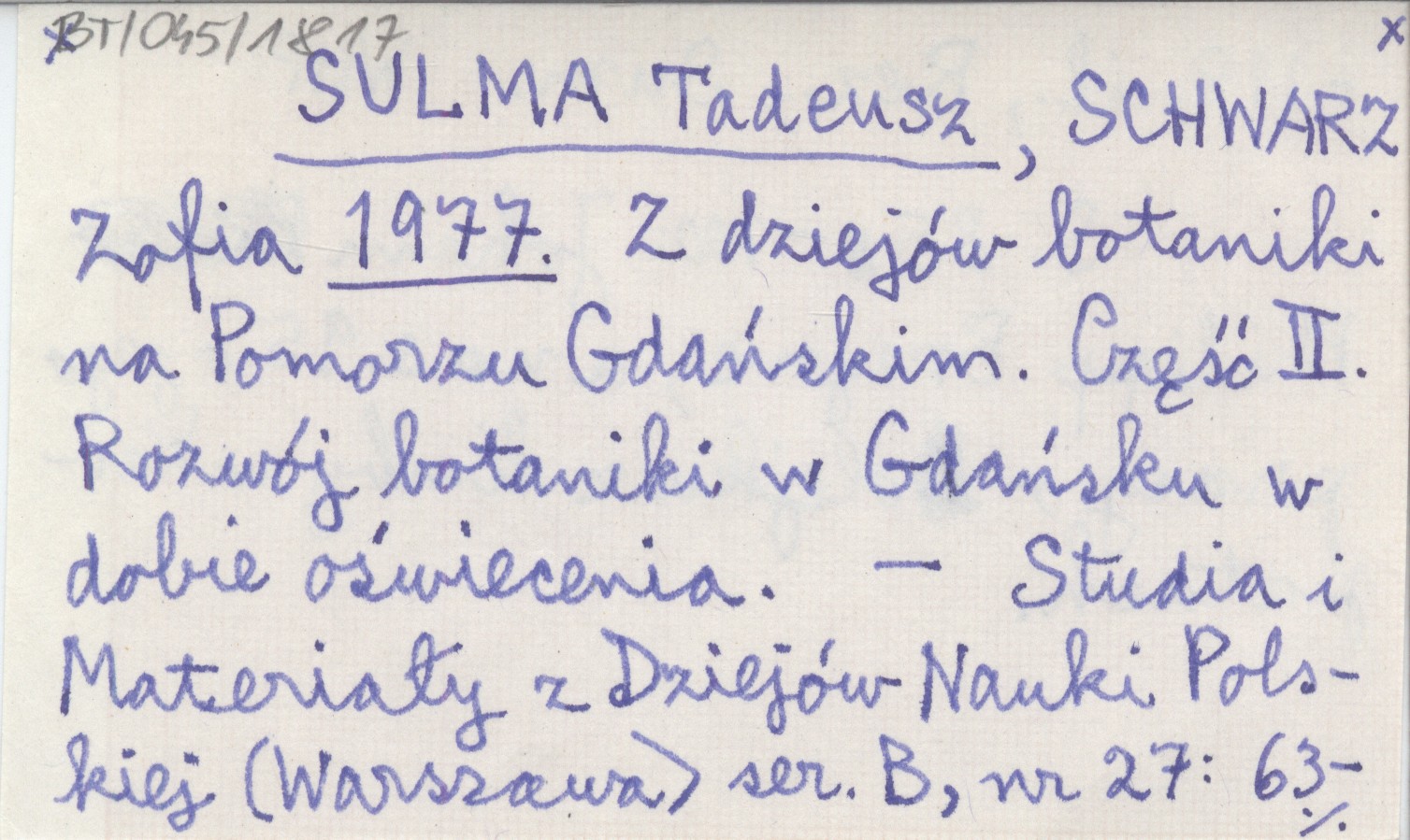 SULMA Tadeusz SCHWARZ, Zofia. ; 1977 Z dziejów botaniki na Pomorzu Gdańskim. Część II. Rozwój botaniki w Gdańsku w dobie oświecenia.
