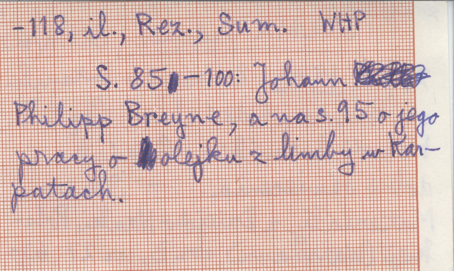 Studia i Materiały z Dziejów Nauki Polskiej (Warszawa) , Ser. B, nr 27: 63-118, il., Rez., Sum. S. 85-100: Johann Philipp Breyne, a na s. 95 o jego pracy o olejku z limby w Karpatach.
