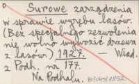 Surowe zarządzenia w sprawie wyrębu lasów. (Bez specjalnego zezwolenia nie wolno wywozić drzewa z lasów). 1927