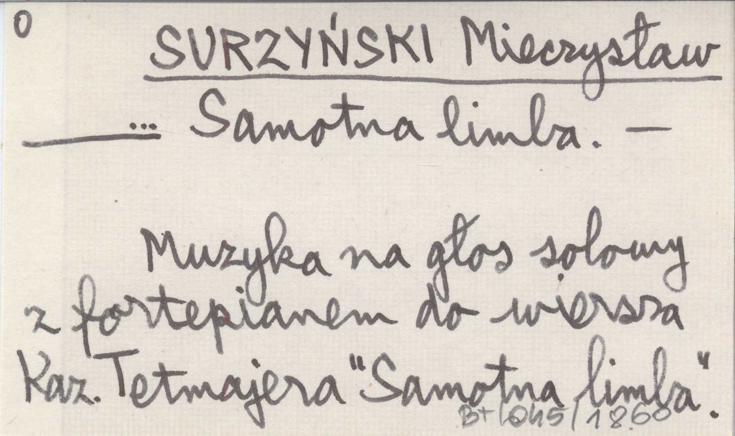 , Muzyka na głos solowy z fortepianem do wiersza Kazimierza Tetmajera "Samotna limba".
