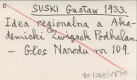 SUSKI Gustaw 1933 Idea regionalna a Akademicki Związek Podhalan.