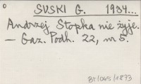 SUSKI G. 1934... Andrzej Stopka nie żyje.