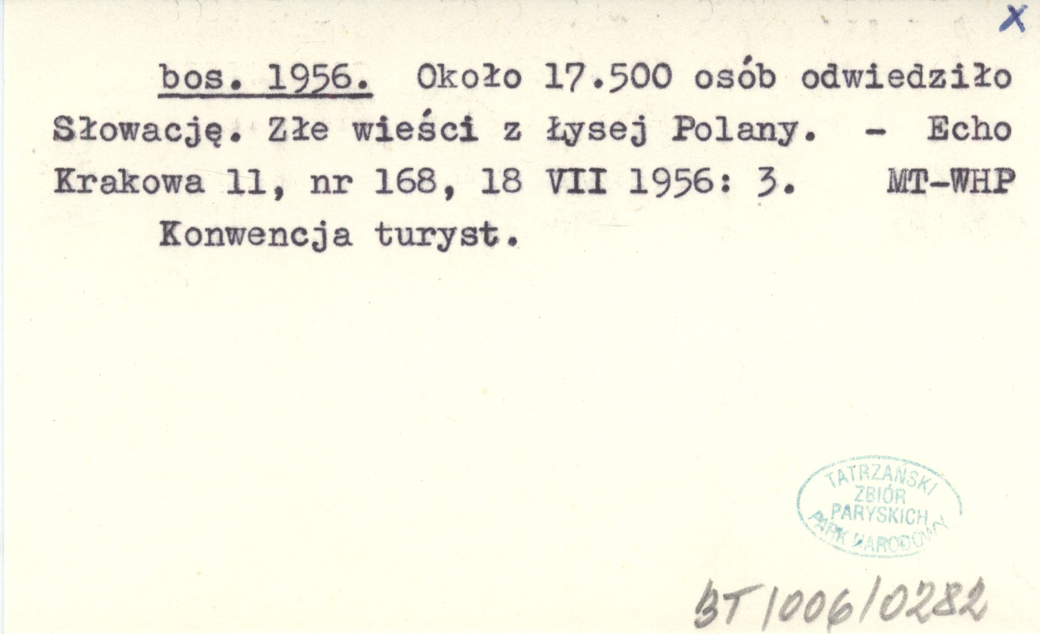 bos. 1956 Około 17.500 osób odwiedziło Słowację. Złe wieści z Łysej Polany.