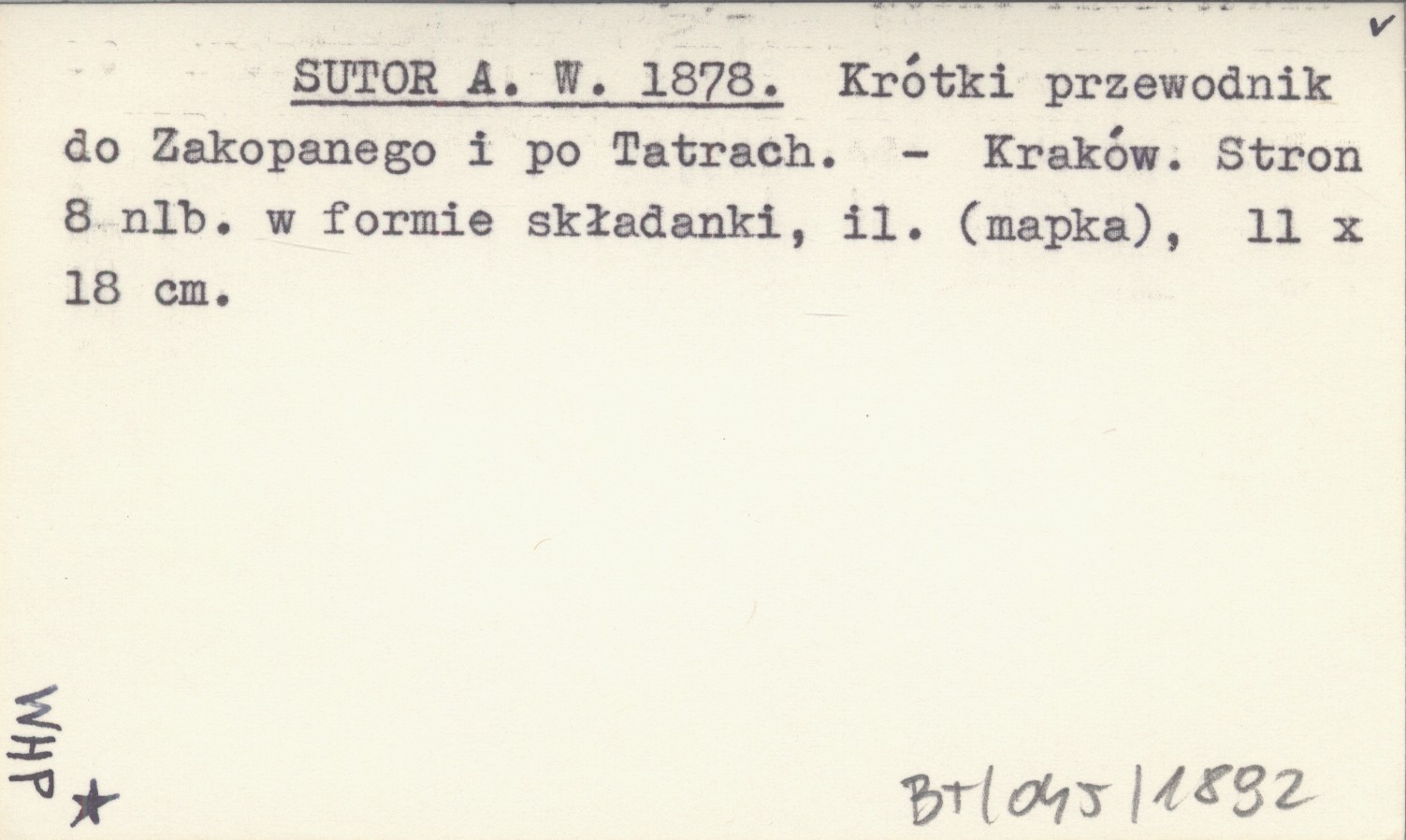 SUTOR A. W. 1878 Krótki przewodnik do Zakopanego i po Tatrach.