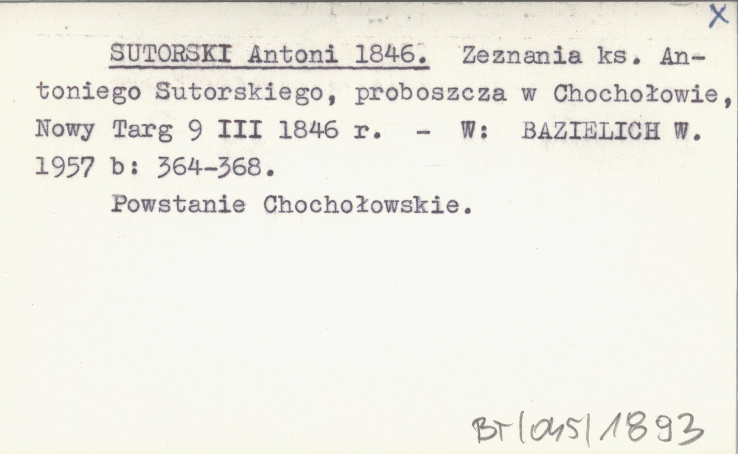 SUTORSKI Antoni 1846 Zeznania ks. Antoniego Sutorskiego, proboszcza w Chochołowie, Nowy Targ 9 III 1846 r.