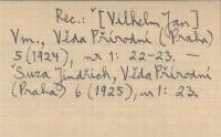 Časopis Moravského Musea Zemského (Brno) , 21. Też jako odbitka: Brno 1923, 10 s. REC: [VILHELM Jan] Vm., Věda Přírodní (Praha) 5 (1924), nr 1: 22-23 ; SUZA Jindřich, Věda Přírodní (Praha) 6 (1925), nr 1: 23 ;