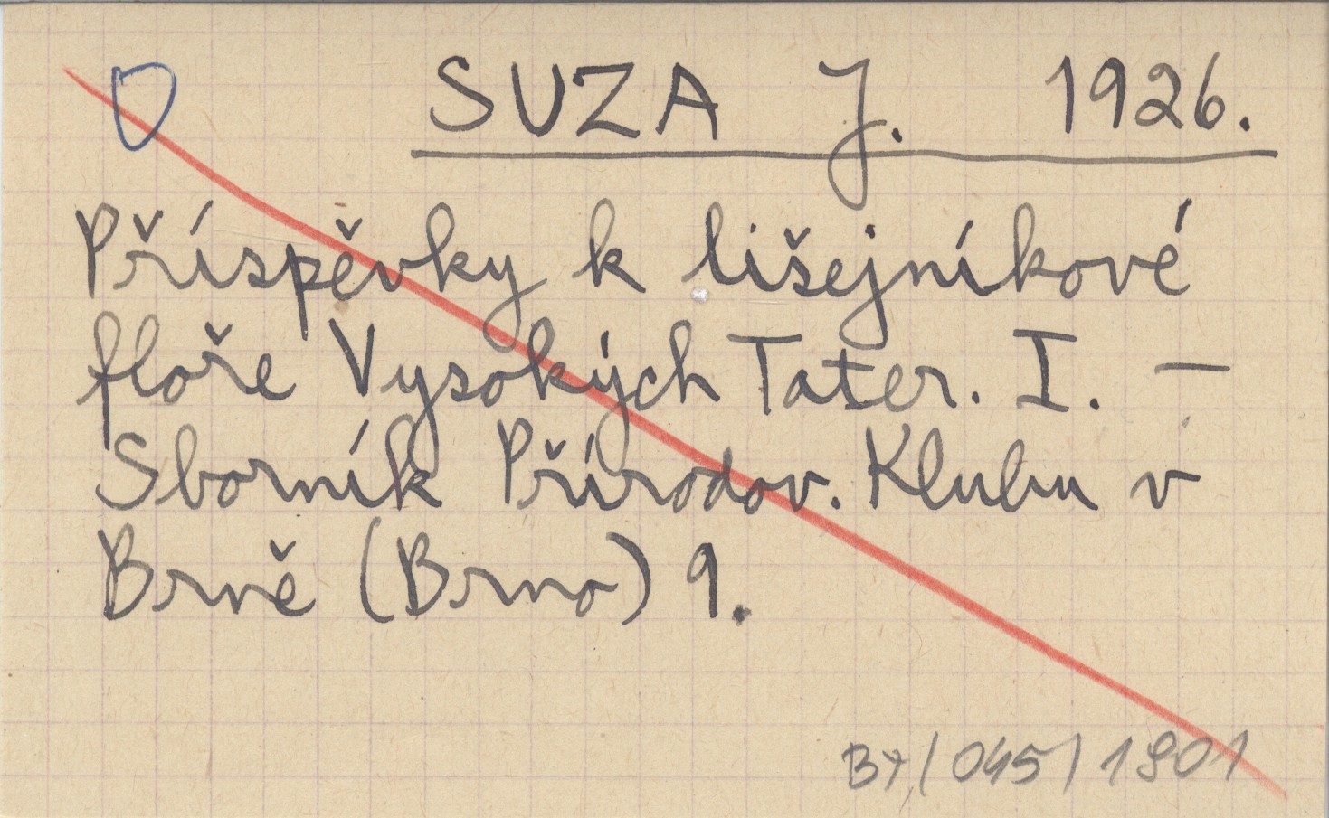 SUZA J. 1926 Příspěvky k liąejníkové floře Vysokých Tater. I.