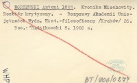 BORZEMSKI Antoni 1891 Kronika Miechowity. Rozbiór krytyczny.