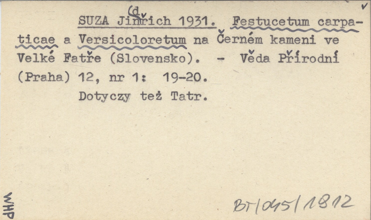Věda Přírodní (Praha) , 12, nr 1: 19-20. Dotyczy też Tatr.