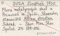 SUZA Jindřich 1930 Flora melafyrových skal u Primovců ve Spiši, Slovensko ; stanoviště Allium strictum Schrad.
