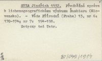 SUZA J. 1928 Příspěvky k lišejníkové floře Vysokých Tater. II.