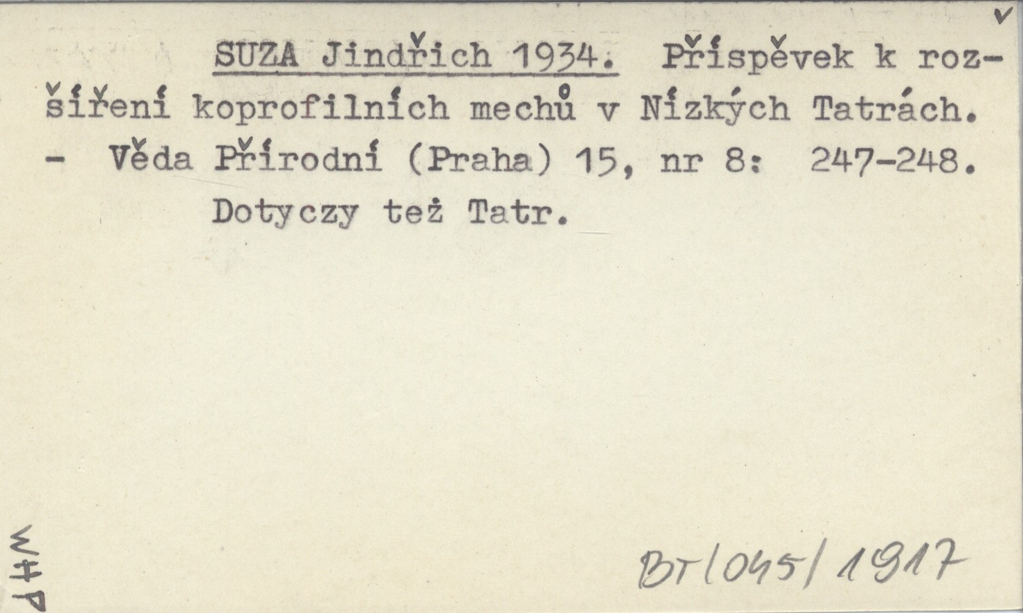 SUZA Jindřich 1934 Příspěvek k roząíření koprofilních mechů v Nízkých Tatrách.