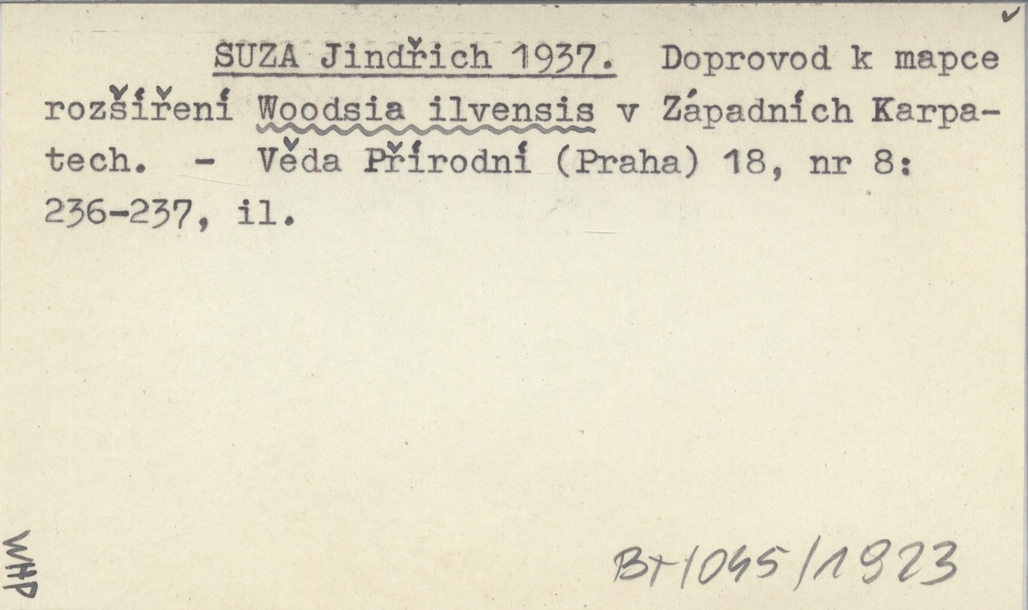SUZA Jindřich 1937 Doprovod k mapce rozšíření Woodsia ilvensis v Západních Karpatech.