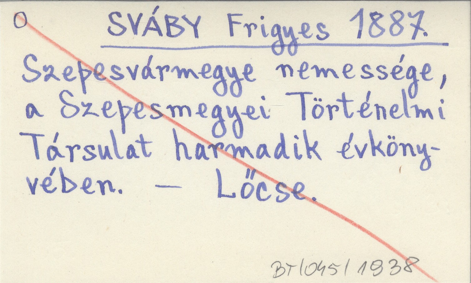 SVÁBY Frigyes 1887 Szepesvármegye nemessége, a Szepesmegyei Történelmi Társulat harmadik évkönyvében.