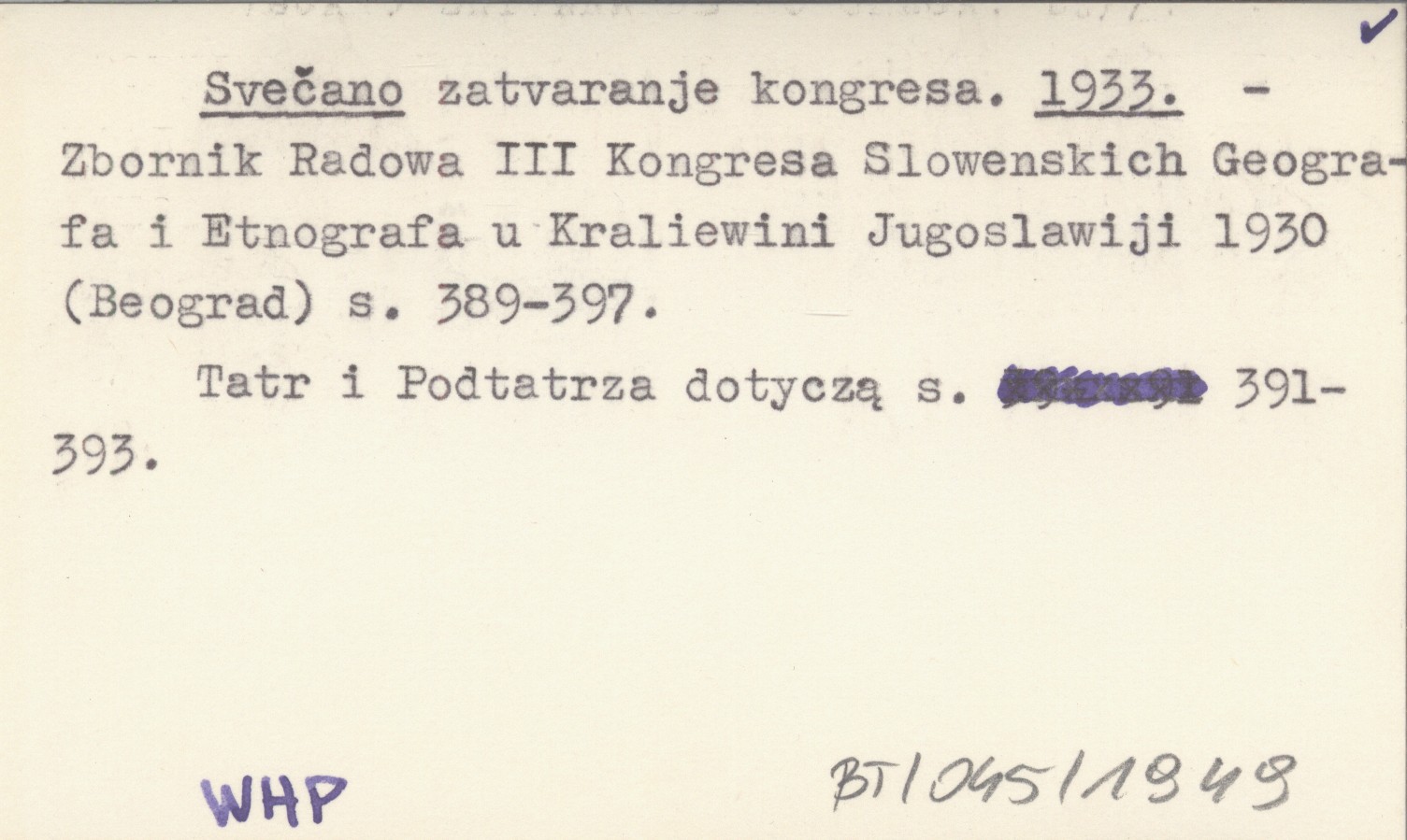 Zbornik Radowa III Kongresa Slowenskich Geografa i Etnografa u Kraliewini Jugoslawiji 1930 Beograd , S. 389-397. Tatr i Podtatrza dotyczą s. 391-393.
