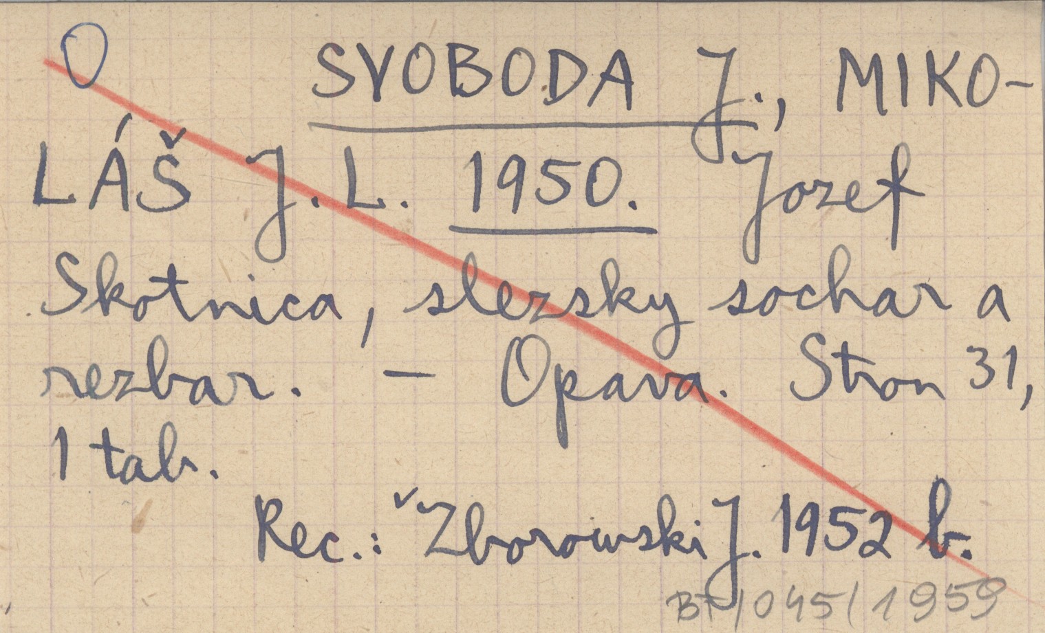 SVOBODA J. MIKOLÁŠ, J. L. ; 1950 Jozef Skotnica, slezsky sochar a rezbar.