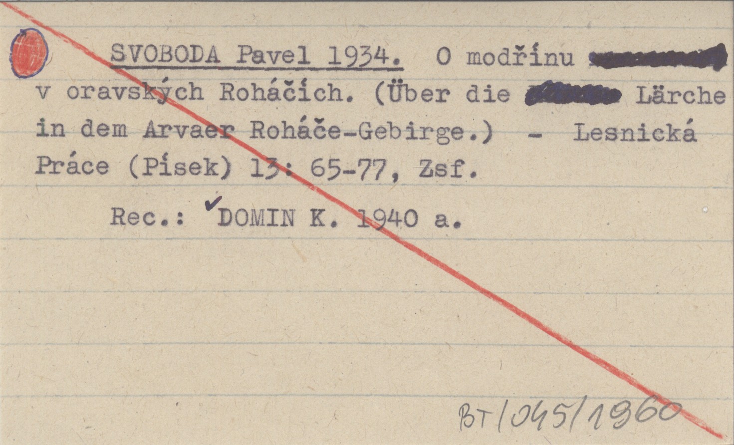 Lesnická Práce (Písek) , 13: 65-77, Zsf. REC: DOMIN K. 1940 a
