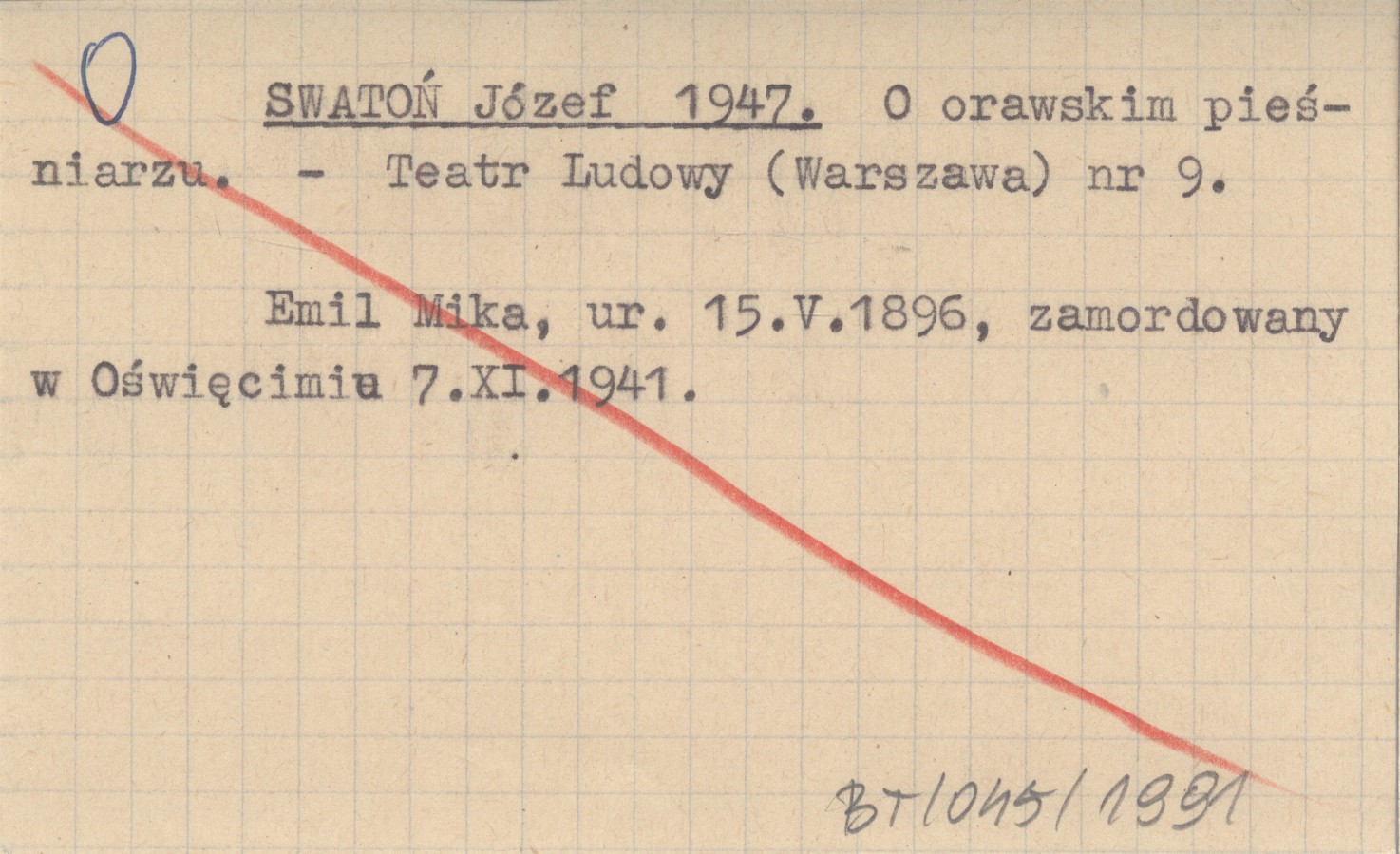 Teatr Ludowy (Warszawa) , 33, nr 9: 424-425. Emil Mika, ur. 15 V 1896, zamordowany w Oświęcimiu 7 XI 1941.