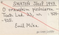 SWATOŃ Józef 1947 O orawskim pieśniarzu.