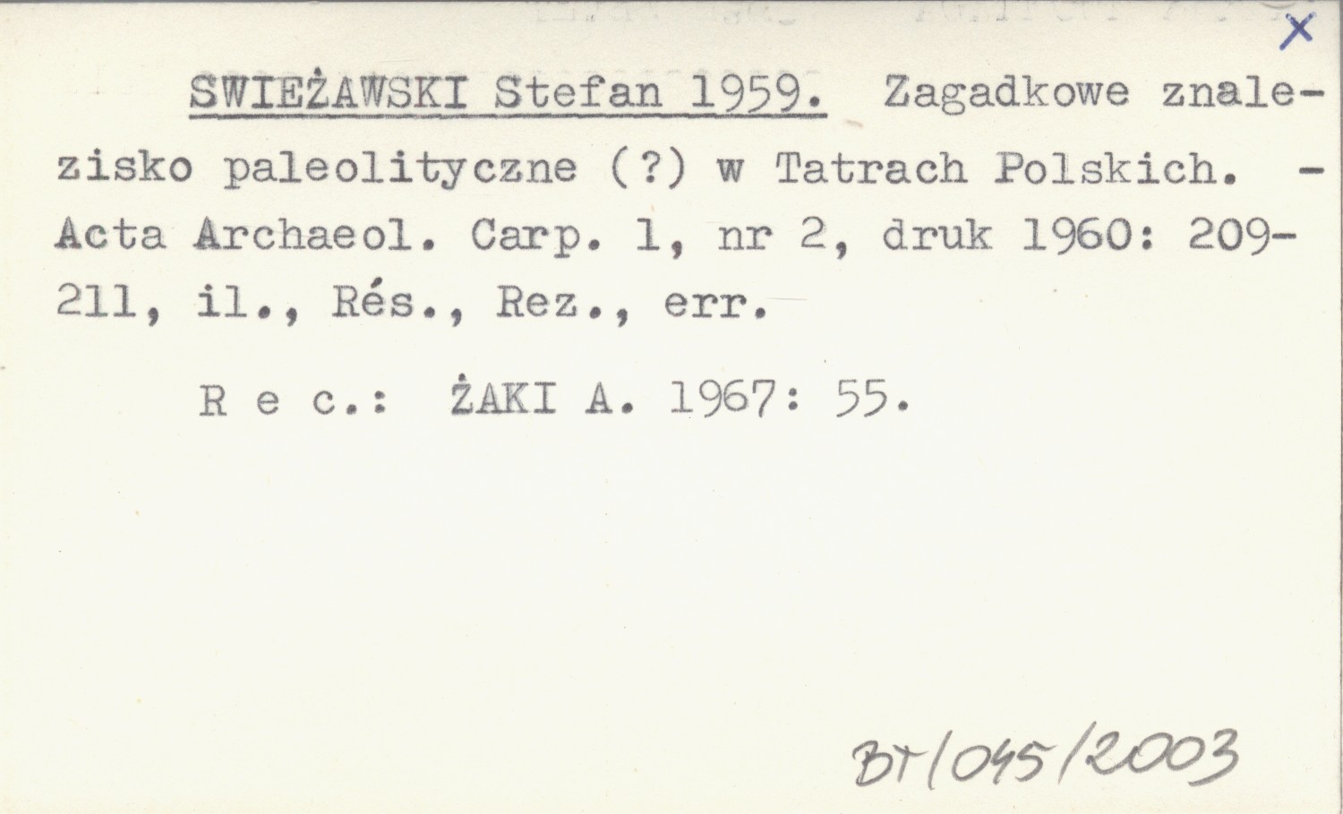 Acta Archeologica Carpathica, 1, nr 2 (druk 1960): 209-211, il., Rés., Rez., err. REC: ŻAKI A. 1967: 55.